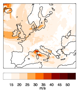 | Maximum 925 hPa wind speed over land from ERA Interim re-analysis (Umax): | 35.16ms-1 |